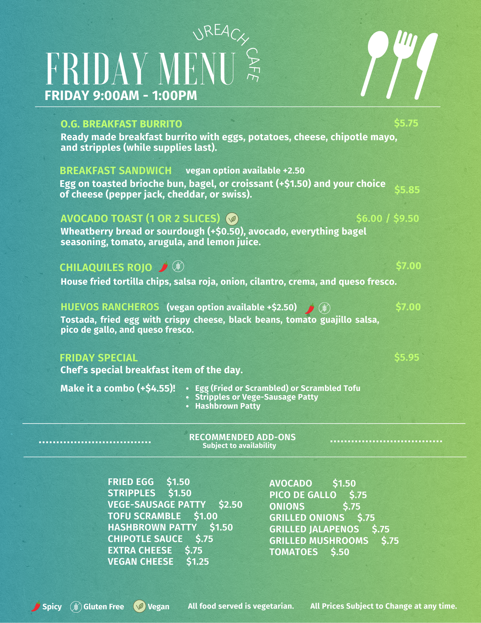 FRIDAY 9:00 AM - 1:00 PM