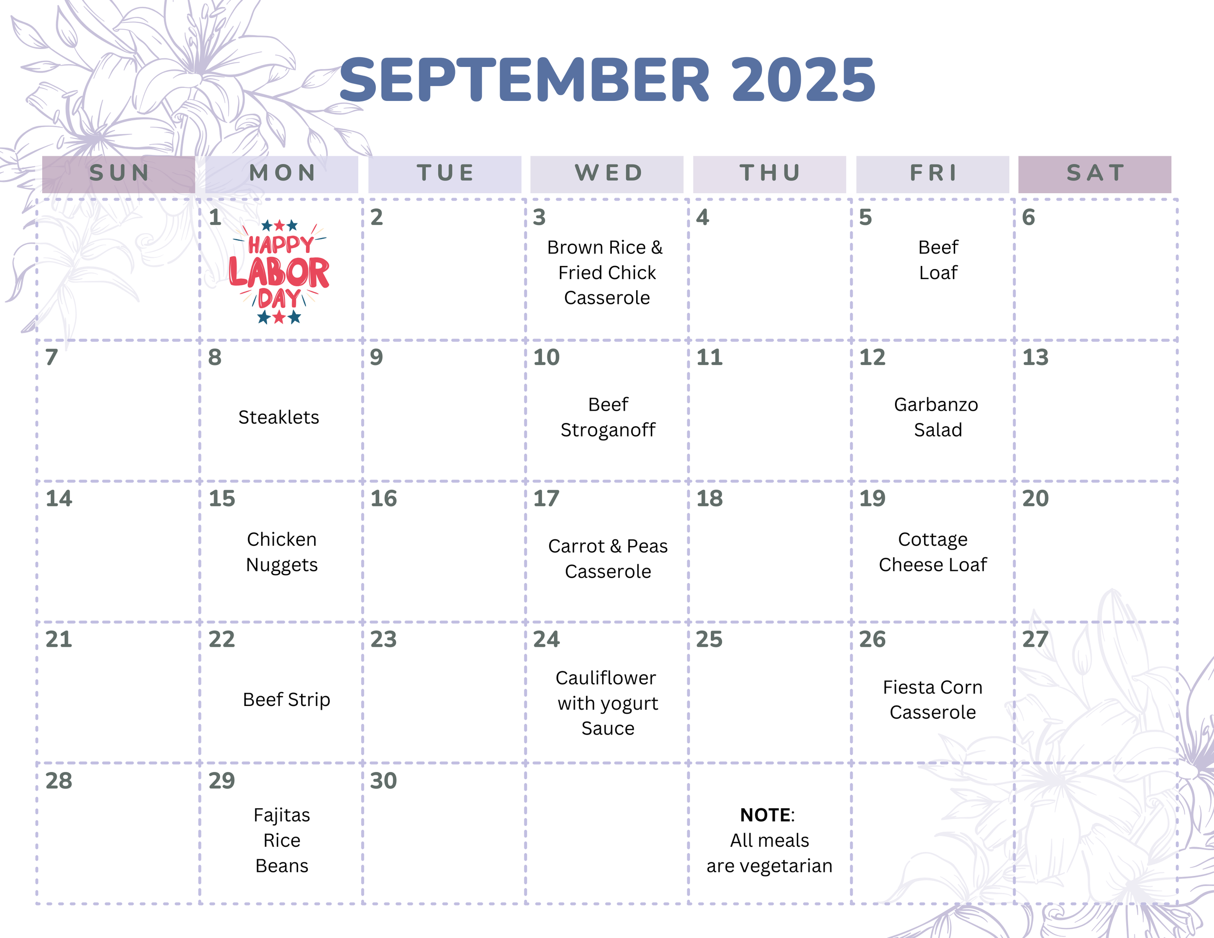 MONTHLY MENU